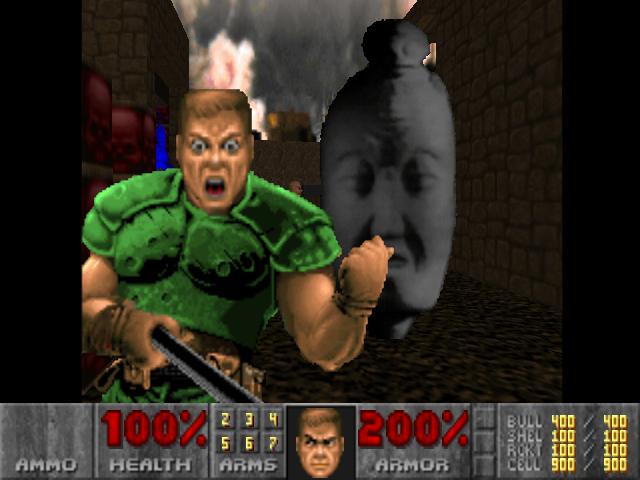 Back in 2012, in that glorious age when everything could be a Doom mod and everything shouldn’t be a terry wad, I took the infamous VID mask—that horrifying stone-faced logo from Russian TV—and shoved it straight into the Doom engine. First as a joke, a quick cacodemon sprite swap with creepy new sounds.